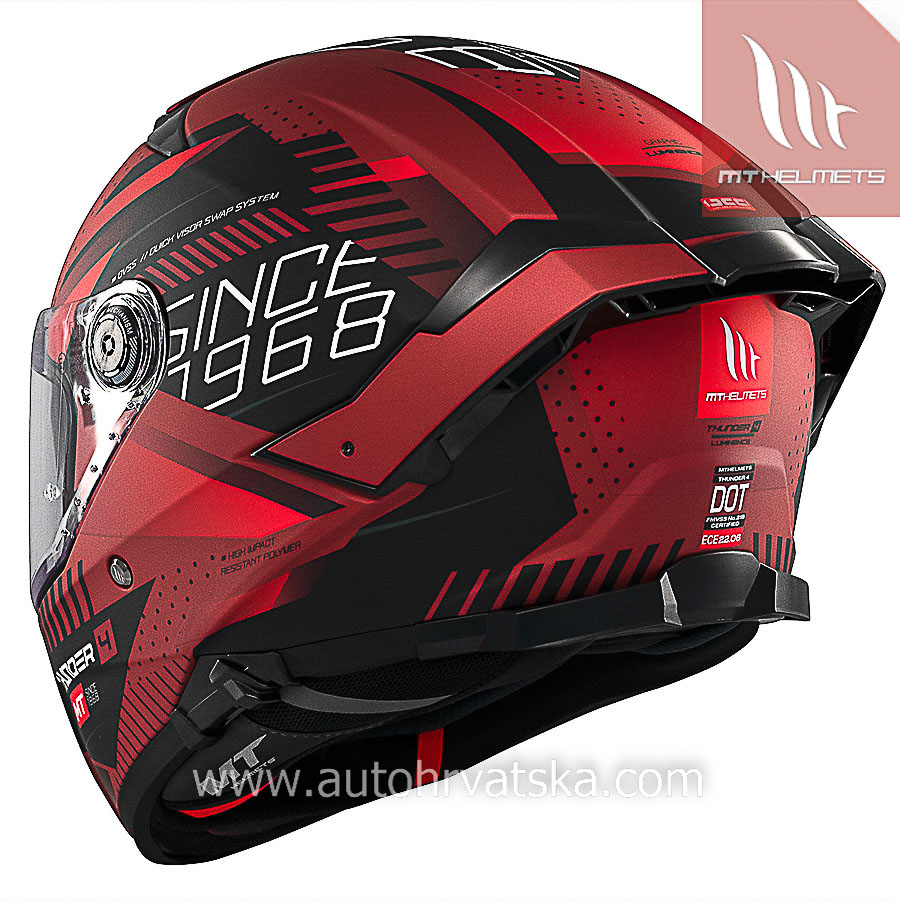 Ova integralna kaciga zadovoljava i premašuje novu europsku sigurnosnu regulativu ECE 22.06 uspostavljenu 2022. Ovaj standard jamči stavljanje na tržište i korištenje kacige koja je prošla najzahtjevnije testove kvalitete i sigurnosti. Ovaj se standard razlikuje od prethodnog R22.05, uključivanjem novih testova visoke i niske energije, testova rotacije kao i novih točaka udara. Drugim riječima zahtjevniji test za najzahtjevnije kacige. Ova kaciga također ima DOT odobrenje.